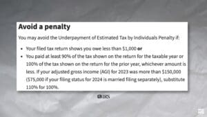 The IRS provides what’s called “safe harbor” rules. These essentially say that if you paid enough during the year, you won’t owe an underpayment penalty—even if you still owe something when you file your tax return.