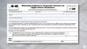 Internal Revenue Service. “About Form W-4P, Withholding Certificate for Periodic Pension or Annuity Payments.” Internal Revenue Service, 2 Aug. 2025, https://www.irs.gov/forms-pubs/about-form-w-4-p. Accessed 13 Jan. 2026.