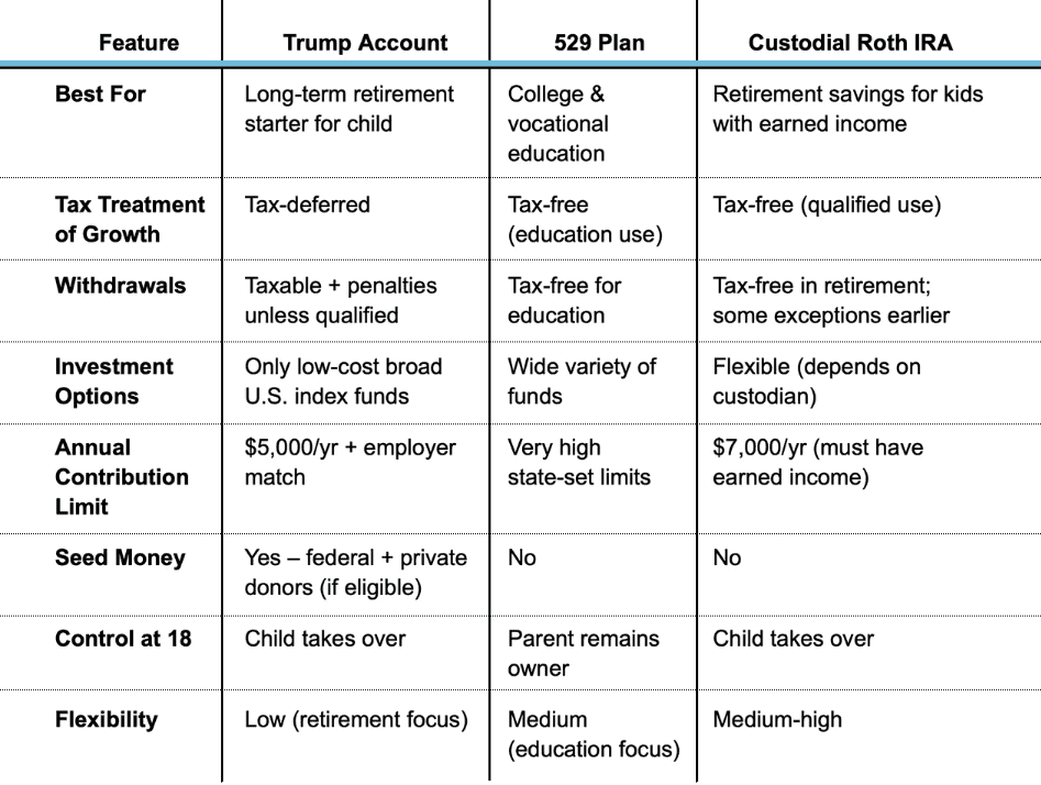 How Do Trump Accounts Compare to 529s and Custodial Roth IRAs?